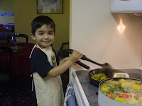 Hoy el post será mas familiar les presentaré a mis nietos Santiago Leopoldo y Carlos Ignacio, ambos son excelentes comensales; Carlos Ignacio tiene 7 1/2 años y Santiago Leopoldo 14 días. Carlos Ignacio es mi “pinche”, le encanta cocinar y tomando las precauciones del caso me ayuda en la cocina, pueden observarlo en la foto.